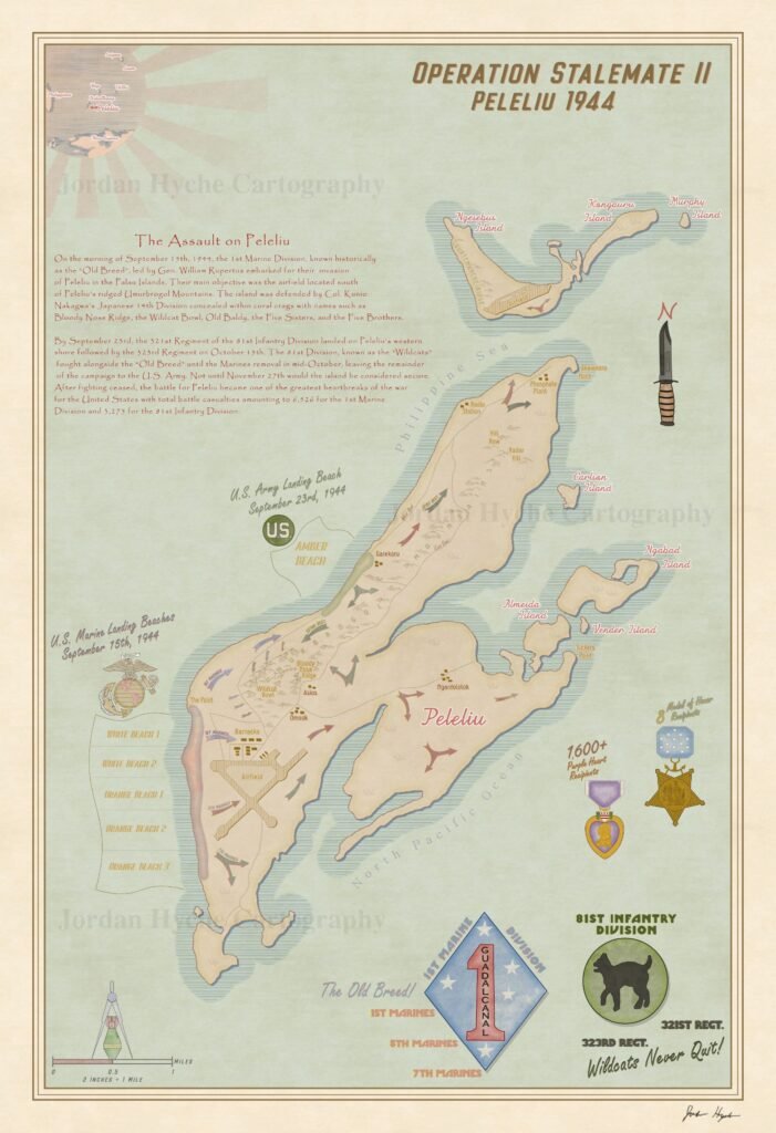 The Assault on Peleliu, 1944. Drawn and designed by Jordan Hyche